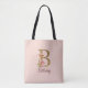 Custom Name Letter B Gold Foil Blush Pink Roses Tote Bag