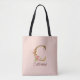 Custom Name Letter C Gold Foil Blush Pink Roses Tote Bag