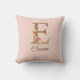 Custom Name Letter E Gold Foil Blush Pink Roses Cushion