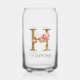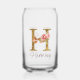 Custom Name Letter H Gold Foil Blush Pink Roses Can Glass