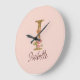 Custom Name Letter I Gold Foil Blush Pink Roses Large Clock