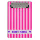 Custom Name + Light Pink & Deep Pink Stripes Mini Clipboard