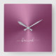 Custom Name Magenta Metallic Style Acrylic Square Wall Clock