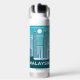 The bottle looks even better in real life. The ice cubes I put in lasts all day! I have my bottle with me all the time. It's summer and having something cold to drink feels amazing. With this bottle I always have something super cold. I have only tried the hot drink once and it lasted a long time as well. The color blue is a navy blue and the white printed on it is vibrant. It printed perfectly. I love my personalized smile water bottle.