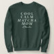 Personalised sweatshirt with a name of a cool calm wellness friendly mum who loves drinking matcha tea. Simple minimal minimalist monochrome monochromatic design with premium look, casual but chic and fashionable. Mummy deserves and needs some time for herself. As mum fuel and also as moments of peace ritual in motherhood chaos. “COOL CALM MATCHA MOM” fully customisable typography saying, phrase, fun inspirational quote for a matcha tea passionate enthusiast. The healthy trendy green beverage gain in popularity this days. The custom name is like a signature, in handwritten script calligraphy. Trendy comfy outfit for you or as a thoughtful personalised gift for another mummy from your mum group of friends. Birthday, Christmas or Mother’s Day gift or friendship gift just because. Motherhood, chic and cool wellness like habits can and should coexist. Even a small gift for a mum to be, at a baby shower, besides the gifts for the baby. A custom heartfelt gift under 35 dollars for her, mum.