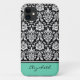 Custom Name Mint Black White Damask Case-Mate iPhone Case