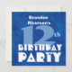 Custom Name Modern Kid's 12th Birthday Blue C358 Invitation