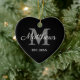 Custom family name monogram black and white Christmas Ceramic Ornament. Monogrammed heart shape ornament. Romantic design for him or her, couple, boyfriend, girlfriend, couple, husband and wife, newly weds, co worker, parents, grandparents etc. Add your own personalised initials and date. Great for 1st Christmas together and other romantic moments. Upload your own photo on the back optionally.