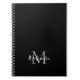 This modern black notebook features a monogram and name in stylish script typography. It is easily customisable.