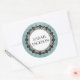 Custom Name Monogram Blue Grey Flower Petals Classic Round Sticker