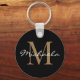 Create your own personalised black round keychain with your custom glam handwritten script name and monogram.