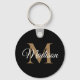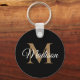 Create your own personalised black round keychain with your custom elegant handwritten script name and monogram.