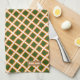 Custom name monogram modern pattern green orange stylish kitchen towel.