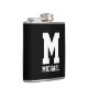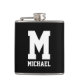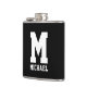 Custom name monogram small black and white Flask. Personalised Christmas and Birthday gift ideas for men. Add your own name initial. Alcohol / Drinking presents for dad, husband, co worker, colleague, sports coach, friend, boss, grandpa, employee etc. Custom background colour with modern bold typography.