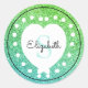 Custom Name Monogram Turquoise Green Glitter Heart Classic Round Sticker