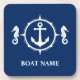 Custom Name Navy Blue Coaster Cork Back Seahorse And Anchor