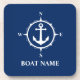 Custom Name Navy Blue Coaster Cork Back Compass And Anchor