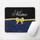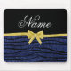 Custom name navy blue glitter zebra stripes bow mouse pad