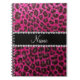 Modern and trendy personalised custom name neon hot pink glitter leopard spots pattern (animal print) with a black diamonds stripe (not real diamonds) with hearts and dots personalised with your name gifts or monogram gifts or your initials. Pretty girly leopard print gift ideas.