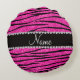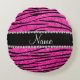 Custom name neon hot pink glitter zebra diamonds round cushion