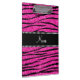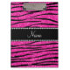 Modern neon hot pink glitter zebra stripes pattern (animal print) (not real glitter) with a black diamonds ribbon stripe (not real diamonds) personalised with your name gifts or monogram gifts or your initials or you can add your own personal text. Glitter zebra gift ideas for girls, teenagers and women.