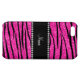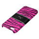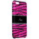 Custom name neon hot pink glitter zebra stripes iPhone case