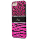 Custom name neon hot pink zebra stripes leopard Case-Mate iPhone case