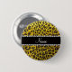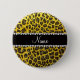 Custom name neon yellow glitter leopard print 6 cm round badge