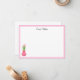 Custom Name Note Card shown in the basic matte white card paper with a Pink border trim and has a pink tulips art print.