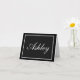 Custom name note cards shown in Black with name in white in a elegant script text.