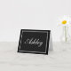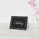 This custom name note card is shown in black with a sample name in white in an elegant script text.