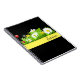 Notebook shown with a black background colour with a cute flowers in the grass with ladybugs graphic print and a name sample.