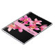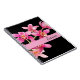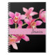 Notebook shown with a black background colour with a lovely pink orchid flowers graphic print and a name sample.