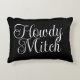 Custom Name Personalised Cowboy Western Theme Accent Pillow for anyone who loves the old wild west era. The text on the front reads Howdy and YOU choose the name or other text. The reverse side shows a cowboy on a rearing horse, swinging his lasso as if to rope the words Yee Haw. A perfect fit for the man cave reclining chair, a cowboy themed child's room, or a casual accent to any western home decor.