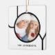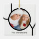 This modern Christmas Photo Ornament is decorated with the word JOY in black on a white background.