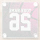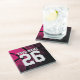 Custom name pink basketball sports jersey number Glass Coaster. Sporty Birthday gift idea for girl team coach, trainer, fan, player etc. Vintage ball graphic. Customise into any colour.