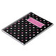 Unique kids office stationery notebook with a pink, white and grey polka dot pattern on a black background, custom name template / subject title template. A girly, cute and cool gift for back to school.