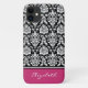 Custom Name Pink Black White Damask Case-Mate iPhone Case