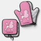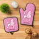 Custom Name Pink Poodles Oven Mitt & Pot Holder Set