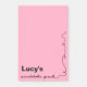 Personalised name graphic scribble pad design on pink.
