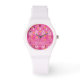 Pink and white tennis rackets with yellow tennis balls on pastel pink background. Cute pattern for tennis players and fans. Sporty Watch with tennis pattern. Great as a gift for tennis player. Custom name in the middle.