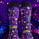 Personalised name pixel gaming alien block creatures multi-coloured on a dark purple graphic socks. This fun pink, yellow, purple and grey text typographical socks can also be customised with your own name, currently reads Lauren. Ideal for gamers and video gaming girls. Other names and colours are available or can be created on request. Graphic art and design by www.mylittleeden.com