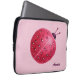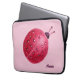 Personalised watercolor ladybug girl laptop sleeve with a beautiful illustration depicting a spherical abstract ladybug with lots of white dots in pink and purple. This girly laptop sleeve has customisable name.