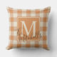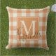 Farmhouse country style autumn pumpkin orange and off-white ivory gingham plaid pattern, with the option to customise or personalise with a family monogram and name or (limited) text of your choice. Fun pretty fall coloured outdoor cushion to adorn your patio or cabin porch with and get in the mood for fall season, the Thanksgiving holiday and Halloween.