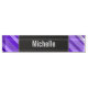 This desk nameplate design features a striped pattern with lines coloured various shades of purple or white. It also features a personalised name in white coloured text within a dark coloured area. It could perhaps be used on the desk of a teacher, educator, professor, doctor, lawyer, or some other professional. [~Z0000047]