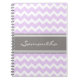 A beautiful spiral journal with elegant and modern light pastel lavender purple, grey and white retro chevrons zigzags stripes pattern. Customise this notebook with your name or custom text.