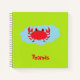 Custom name red crab on blue and green notebook