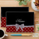 Red diamonds (not real diamonds) polka dots pattern background with a silver glitter bow (faux glitter, not real) ribbon personalised with your custom name gifts or monogram gifts or your initials you can write any words you like featuring an elegant and traditional fancy lettering Elegant gifts for women, ideal for weddings.