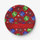 Custom name red ugly christmas sweater pattern paper plate