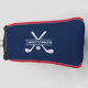 Fore! Enjoy this personalised design featuring your name, golf clubs, a golf ball and tee in red, white and blue.